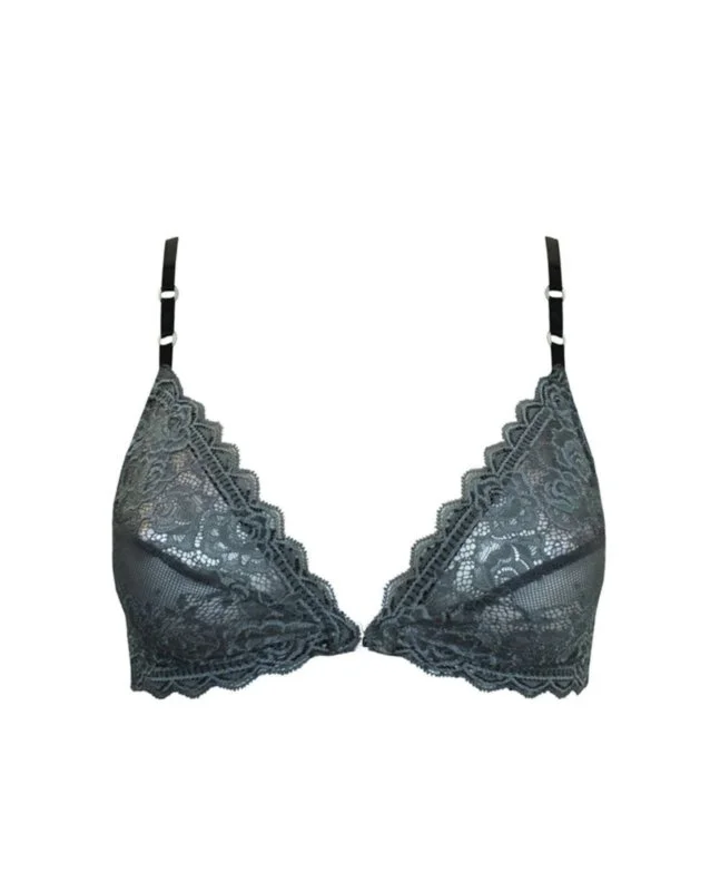 This contemporary design features exquisite silver ring details and a sheer finish for a touch of modern sensuality. The wireless, unpadded construction offers comfortable support, while the black strap details allow for mix-and-match versatility. Pair it with the matching Jade panties or string for a complete set, or choose black bottoms for a bolder look.
